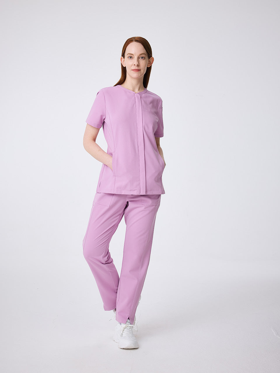 - Straight hem hits below the waistband